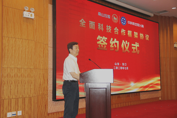 韓恩厚感謝煙臺(tái)市、龍口市政企單位多年來(lái)對(duì)中科院科技合作的大力支持,介紹了沈陽(yáng)分院的總體情況以及推進(jìn)院省合作取得的進(jìn)展與成效。他表示沈陽(yáng)分院將一如既往的發(fā)揮中科院技術(shù)創(chuàng)新和人才集聚優(yōu)勢(shì),與南山控股一起開(kāi)展高起點(diǎn)、多領(lǐng)域、全方位的合作,促進(jìn)更多中科院技術(shù)成果在南山控股轉(zhuǎn)移轉(zhuǎn)化,為助推新舊動(dòng)能轉(zhuǎn)換和高質(zhì)量發(fā)展作出應(yīng)有貢獻(xiàn)。