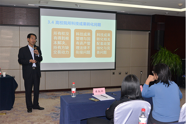 黃敘新以“科技成果轉化與股權設計”為題,就我國成果轉化發(fā)展趨勢、企業(yè)風險與防范、成果轉化問題剖析、股權設計與激勵機制以及成果轉化實操案例解讀等為學員們做了精彩報告。在下午的咨詢和答疑環(huán)節(jié),黃敘新結合自身工作經驗,解答了學員們在成果轉化實際操作過程中遇到的問題,特別是融資過程中股權架構的設計問題。本次會議得到參培人員的一致好評,并表示會后將與黃敘新深入交流,指導本單位成果轉化股權融資的服務工作。