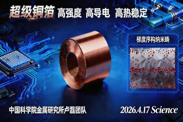 近日,這一難題迎來重要突破。中國(guó)科學(xué)院金屬研究所沈陽材料科學(xué)國(guó)家研究中心盧磊研究員團(tuán)隊(duì)與合作者, 成功研發(fā)出一種兼具超高強(qiáng)度、高導(dǎo)電性與優(yōu)異熱穩(wěn)定性的銅箔,相關(guān)研究結(jié)果于北京時(shí)間2026年4月17日在《科學(xué)》(Science)周刊在線發(fā)布。
