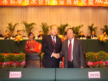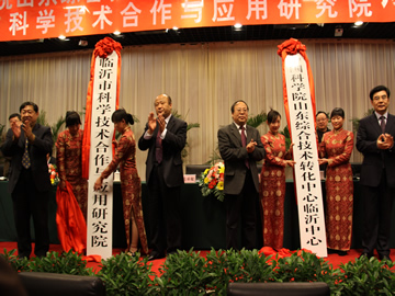 2008年12月24日,中國科學(xué)院山東綜合技術(shù)轉(zhuǎn)化中心臨沂中心暨臨沂市科學(xué)技術(shù)合作與應(yīng)用研究院成立大會(huì)在臨沂市舉行。中科院沈陽分院院長王慶禮,省科技廳副廳長王家利,省科學(xué)院黨委書記李海艦,臨沂市委書記連承敏,市長張少軍,市人大常委會(huì)副主任杜甲普,副市長左沛廷,市政協(xié)副主席楊榮三,中科院山東中心主任王曉斌、副主任趙家緒等出席大會(huì)。
