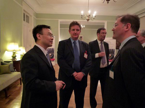 英國在航空領(lǐng)域研發(fā)與工業(yè)實力僅次于美國,位列歐盟各國第一,擁有航空相關(guān)企業(yè)2600多家。此次英國地區(qū)航空聯(lián)盟首席執(zhí)行官代表團一行9人訪華,目的是了解中國航空市場需求與研發(fā)情況,尋求在該領(lǐng)域的商業(yè)和研發(fā)合作。國家商務(wù)部、中國航空工業(yè)集團以及英國羅羅公司、空中客車公司等在華航空工業(yè)企業(yè)有關(guān)人員40余人應(yīng)邀出席了英國大使館的招待晚宴。