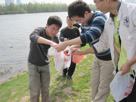 2010年怡人的夏天,雖然來得晚了一點,但依然擋不住同學們對大自然的熱愛。5月14日,四室及五室研究生黨支部組織黨員、預備黨員、積極分子等共31人,踏上了撿拾白色垃圾、促進環(huán)保的五里河踏青之旅。