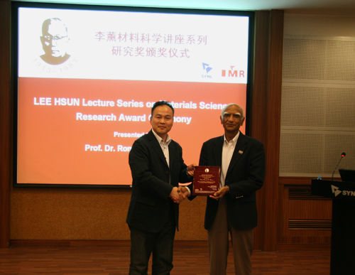 來訪期間,Batra教授為金屬所科研人員和研究生作了題目為:“Adiabatic Shear Bands in Particulate Composites”、“Strain Localization in Polycarbonates Deformed at High Strain Rates”、“Deduction of Mechanical Properties of Carbon Nanotubes from Molecular Static/Dynamics Simulations”3個精彩學術(shù)報告,金屬所副所長譚若兵在報告前會見了Batra教授,并為他頒發(fā)了李薰研究獎獎牌。來訪期間,Batra教授還與金屬所材料疲勞與斷裂研究部、先進炭材料研究部的科研人員和研究生進行了深入的交流,并參觀了沈陽材料科學國家(聯(lián)合)實驗室和鈦合金研究部實驗室。