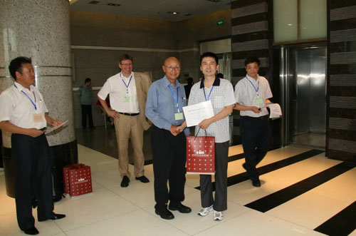 麻省理工學(xué)院Sidney Yip教授為展版報(bào)告獲獎(jiǎng)?wù)哳C獎(jiǎng)。