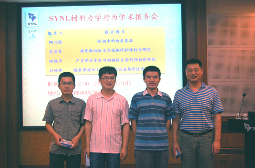 沈陽材料科學國家(聯(lián)合)實驗室舉辦的以材料力學行為為主題的“SYNL材料力學行為學術報告會”已順利舉辦兩期,并得到了所內(nèi)廣大師生的積極響應和參與,第三期報告會于7月16日上午在李薰樓468房間順利舉行,共有近百名師生參加了本次會議。其中,訪問金屬所的美國北卡羅來納州立大學的Zhu Yuntian教授也參加了報告會,與報告人進行積極交流。同時,國家自然科學基金重大項目的參加單位之一浙江大學也派遣研究生來參加本次報告會,會議之后還與相關人員進行了交流討論。