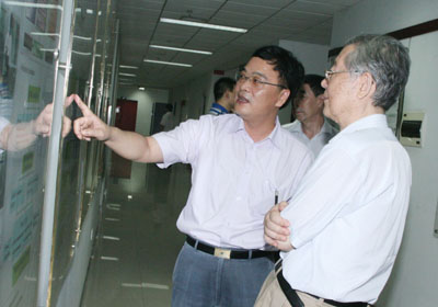 周光召同志首先來到航天催化與新材料研究室,聽取了張濤所長的全所工作報(bào)告。在報(bào)告中,張濤介紹了大連化物所近期科研工作,特別是973項(xiàng)目的進(jìn)展以及人才培養(yǎng)引進(jìn)、潔凈能源國家實(shí)驗(yàn)室建設(shè)等各方面工作。在談到甲醇制烯烴、分子篩膜與醇水分離、全礬液流儲能電池等項(xiàng)目時(shí),周光召同志不時(shí)提問,詳細(xì)了解了這些項(xiàng)目的具體情況。他特別指出,大連化物所的科研工作一定要對大連市的經(jīng)濟(jì)發(fā)展做出貢獻(xiàn)。
