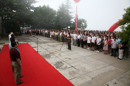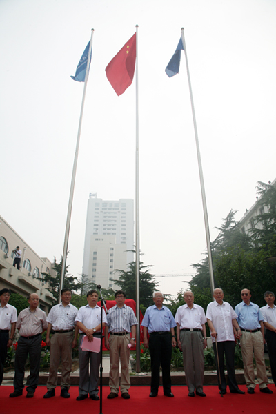 在莊嚴(yán)的國歌聲中,國旗、院旗和所旗在充滿希望的晨曦里相繼冉冉升起,大家滿懷深情和喜悅莊重地行注目禮。