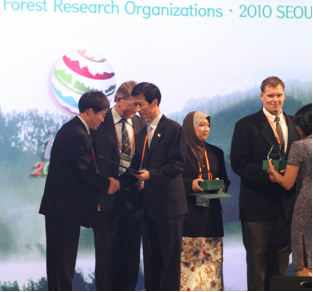 經(jīng)國(guó)際林業(yè)研究聯(lián)盟(簡(jiǎn)稱國(guó)際林聯(lián);International Union of Forest Research Organizations,IUFRO)常委、各會(huì)員單位推薦和專家評(píng)審,于2009年11月評(píng)選出本屆11位“國(guó)際林聯(lián)科學(xué)成就獎(jiǎng)”(IUFRO Scientific Achievement Award)獲獎(jiǎng)?wù)撸ū緦毛@獎(jiǎng)數(shù)量是該獎(jiǎng)項(xiàng)設(shè)立以來(lái)評(píng)出最多的一次)。2010年8月23-28日在韓國(guó)首爾召開的國(guó)際林聯(lián)第23屆世界大會(huì)(XXIII IUFRO World Congress)開幕式上舉行了本屆“國(guó)際林聯(lián)科學(xué)成就獎(jiǎng)”頒獎(jiǎng)儀式。沈陽(yáng)生態(tài)所朱教君博士獲此殊榮,這是中國(guó)林業(yè)科學(xué)研究工作者第二次榮獲此項(xiàng)世界獎(jiǎng),更是中國(guó)科學(xué)院林業(yè)科技工作者第一次獲此殊榮。