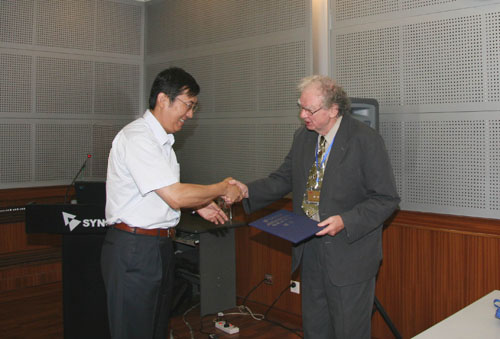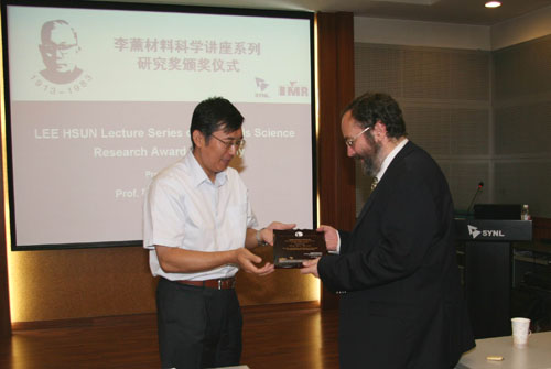 盧柯所長為Yves Brechet教授頒發(fā)李薰獎(jiǎng)獎(jiǎng)牌