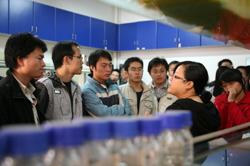 在海洋地質(zhì)與環(huán)境重點實驗室,同學(xué)們參觀了X射線衍射分析室、海洋地球化學(xué)實驗室、穩(wěn)定同位素質(zhì)譜分析室、海洋生物地球化學(xué)實驗室、海洋地質(zhì)微生物實驗室等,科研人員向同學(xué)們詳細介紹了儀器設(shè)備、研究內(nèi)容等情況,并耐心解答了同學(xué)們的提問。