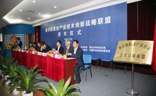 海洋防腐蝕產(chǎn)業(yè)技術(shù)創(chuàng)新戰(zhàn)略聯(lián)盟由中科院海洋研究所牽頭,聯(lián)合海洋化工研究院、中國船舶工業(yè)總公司七二五研究所青島分部、青島雙瑞防腐防污工程有限公司、青島港(集團(tuán))等國內(nèi)13家海洋防腐行業(yè)的知名企業(yè)和13家科研實(shí)力雄厚的研究院所、大學(xué)共同組建。