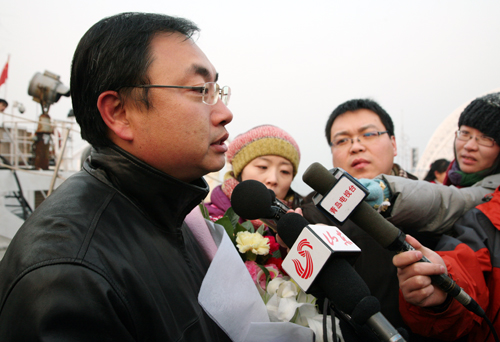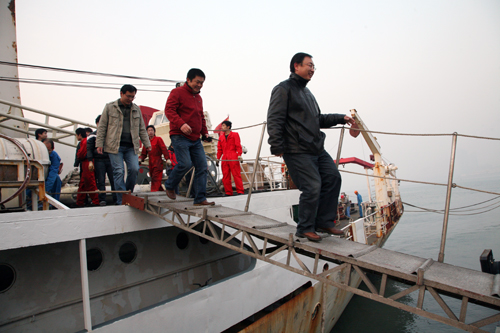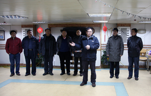 海洋所孫松所長、王啟堯書記,侯一筠、代亮、李鐵剛副所長,胡敦欣院士等領(lǐng)導(dǎo)和科研人員到碼頭迎接。