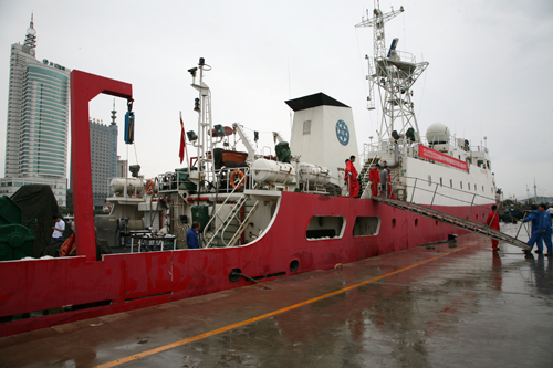 “科學(xué)三號(hào)”在碼頭整裝待發(fā)