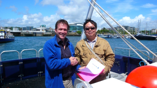 6月21日,孫松所長(zhǎng)率隊(duì)訪問(wèn)英國(guó)普利茅斯大學(xué)海洋研究所(UoPMI),并與研究所所長(zhǎng)Martin Attrill教授在英國(guó)普利茅斯灣Falcon Spirit考察船上簽訂兩所科技合作備忘錄。