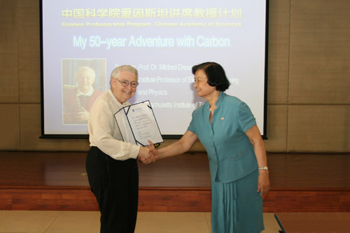 應金屬所邀請,中國科學院2010年度“愛因斯坦講席教授”獲得者、美國麻省理工學院電子工程系和物理系的著名科學家Mildred Dresselhaus教授于6月28-30日來金屬所進行了學術(shù)訪問。