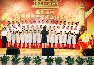 最后,與會(huì)領(lǐng)導(dǎo)和廣大職工、研究生一起欣賞了文藝演出。十五室和1901組聯(lián)隊(duì)的合唱《我愛(ài)你,中國(guó)》、《精忠報(bào)國(guó)》,一室和公共分析測(cè)試組的合唱《我的中國(guó)心》、《加油,中國(guó)》,五室的合唱《我和我的祖國(guó)》、《大連化物所所歌》,天邦公司的合唱《中國(guó)進(jìn)行曲》、《愛(ài)我中華》,老年大學(xué)合唱團(tuán)的《江山》、《把一切獻(xiàn)給黨》,依利特公司的合唱《北京的金山上》、《天路》,一首首歌曲豪邁昂揚(yáng),抒發(fā)了奮戰(zhàn)在科技一線的廣大職工熱愛(ài)黨、歌頌黨、祝福黨、“把一切獻(xiàn)給黨”的真摯情懷。退休職工的舞蹈《繡紅旗》、在職職工的舞蹈《映山紅》、青年職工和研究生表演的情景劇《黨的女兒》、退休職工的喜慶腰鼓《越來(lái)越好》,擷取了一個(gè)個(gè)歷史片斷,展現(xiàn)了中國(guó)共產(chǎn)黨從誕生到壯大到引領(lǐng)各族人民走向輝煌的奮斗篇章,頌揚(yáng)了一名優(yōu)秀的共產(chǎn)黨員就是一面光輝的旗幟的崇高品質(zhì)。氣勢(shì)雄壯、感情充沛的七室和管理及支撐部門(mén)的80余人大合唱《走向復(fù)興》,把演出推向了高潮。