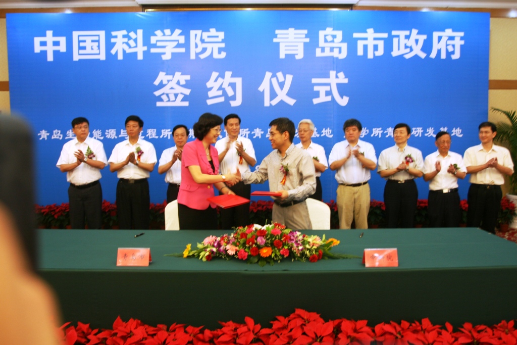 中科院院地合作局局長戚強、基本建設(shè)局局長孔繁文、沈陽分院副院長韓恩厚、青島生物能源與過程所所長王利生、黨委書記趙汐潮、中科院辦公廳、高技術(shù)局、部分院屬科研院所主要領(lǐng)導(dǎo),青島市政協(xié)副主席、市發(fā)改委主任劉明君、政府秘書長李眾民、青島市委組織部、財政局、教育局、科技局、人社局、編辦、建委、規(guī)劃局、國土局、李滄區(qū)、嶗山區(qū)、平度市、高新區(qū)等部門、區(qū)、市主要領(lǐng)導(dǎo)參加了簽約儀式。