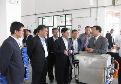 吳登昌在聽取匯報中就相關(guān)問題與大家進(jìn)行交流并到現(xiàn)場指導(dǎo)工作。吳登昌對大連化物所的產(chǎn)業(yè)化工作及公司發(fā)展很感興趣,并希望同行的陜西企業(yè)與大連化物所產(chǎn)業(yè)化公司能夠加強(qiáng)深入的交流與合作。