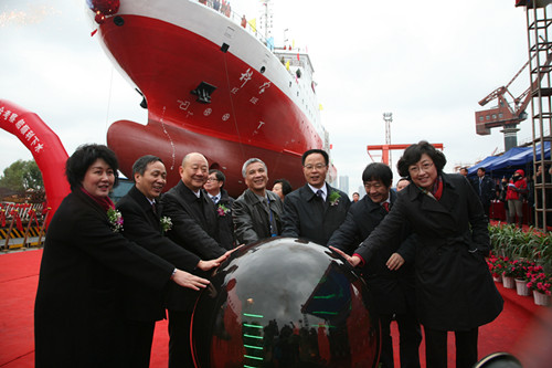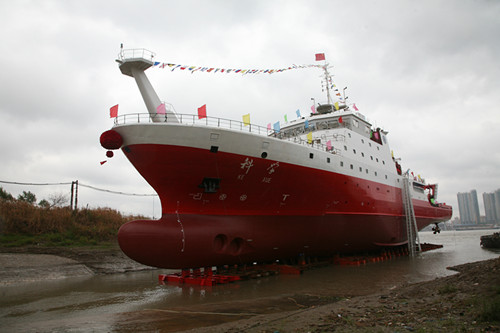 中國科學院副院長丁仲禮、山東省委常委、副省長孫偉、湖北省副省長田承忠、國家發(fā)展改革委高技術司巡視員劉艷榮、教育部科學技術司司長王延覺、青島市委常委、副市長張惠、中國船舶重工集團公司副總經(jīng)理李國安出席儀式并講話,教育部、科技部、農(nóng)業(yè)部、國土資源部、中國科學院、海關總署、中國氣象局、國家海洋局、中國船舶重工集團公司等單位和部門領導出席,項目法人單位、共建單位、設計單位、建造單位、監(jiān)理單位和國內(nèi)相關涉海研究單位的領導參加了下水儀式。下水儀式由中國科學院計劃財務局局長孔力主持。