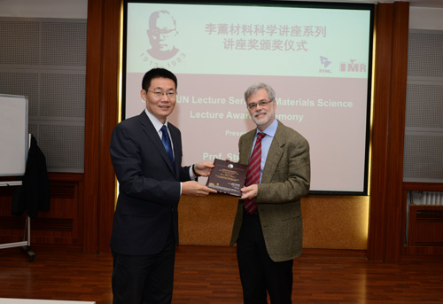 來訪期間,Stefan Bl gel教授為金屬所科研人員和研究生作了題為 “Computing Solids: past, present, future”的李薰獎(jiǎng)報(bào)告。報(bào)告前,張健副所長(zhǎng)代表金屬所為他頒發(fā)了李薰講座獎(jiǎng)獎(jiǎng)牌。頒獎(jiǎng)儀式和報(bào)告由張志東研究員主持。在報(bào)告中, Stefan Bl gel教授從磁存儲(chǔ)和自旋電子學(xué)的發(fā)展歷史出發(fā),生動(dòng)地展示了計(jì)算材料設(shè)計(jì)在其中扮演的不可或缺的角色(如隧穿磁電阻效應(yīng)TMR)。他還在報(bào)告中著重強(qiáng)調(diào)了密度泛函理論(DFT)在計(jì)算物理、計(jì)算化學(xué)以及計(jì)算材料學(xué)領(lǐng)域中的非凡貢獻(xiàn)。最后他就國(guó)際象棋和圍棋的人機(jī)大戰(zhàn)與超級(jí)計(jì)算的發(fā)展趨勢(shì)也發(fā)表了自己的見解。報(bào)告得到了我所科研人員和研究生的熱情響應(yīng),聽眾紛紛踴躍提問,就感興趣的問題與Stefan Bl gel教授進(jìn)行了討論。