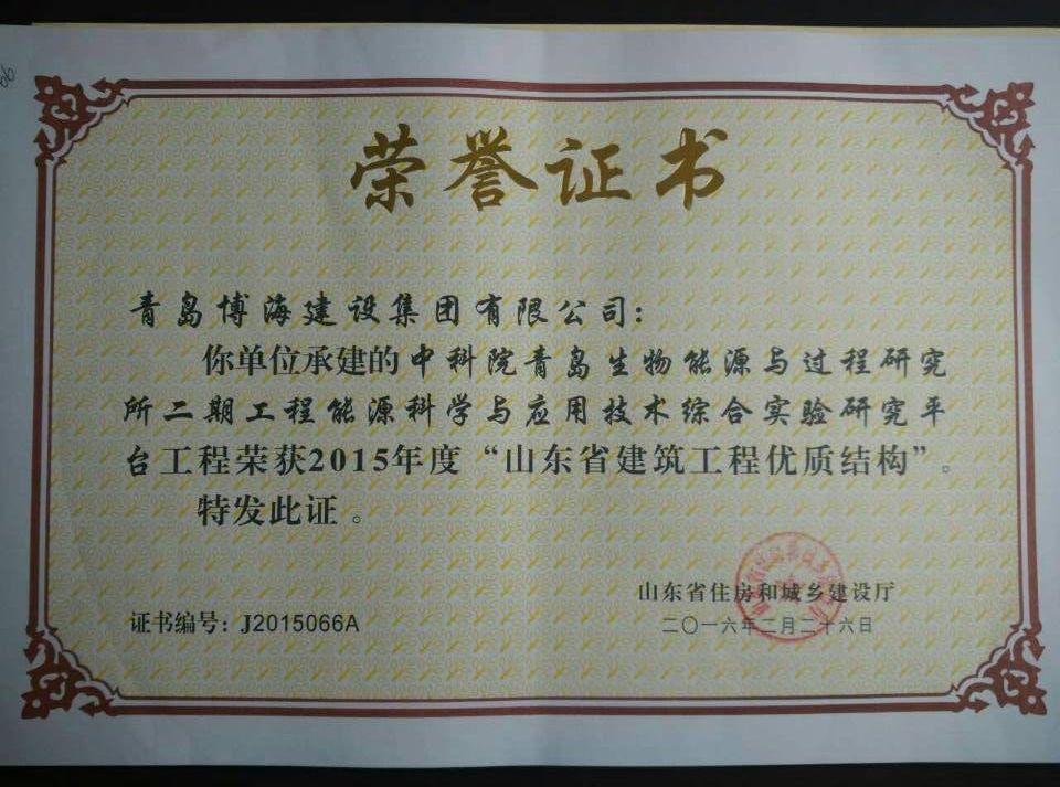 經山東省住房和城鄉(xiāng)建設廳組織專家,從現場質量管理制度、材料檢測、結構抽檢、主體結構、施工日志、隱蔽記錄、物資資料、觀感質量等方面嚴格評審,一致認為該項目達到了工程結構優(yōu)質的評價標準。