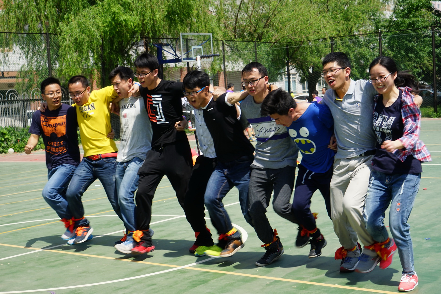 這次趣味運(yùn)動(dòng)會(huì)得到了各個(gè)研究室的大力支持和研究生的廣泛參與,共有八支代表隊(duì)、近百人參加比賽。運(yùn)動(dòng)會(huì)設(shè)有“仙人指路”、“集體跳大繩”、“摸石過河”、“女王保衛(wèi)戰(zhàn)”、“十人十一足”等五個(gè)項(xiàng)目。在新穎有趣的比賽中,隊(duì)員們熱情高漲,觀眾歡呼聲此起彼伏?!凹w跳大繩”項(xiàng)目,十名參賽隊(duì)員搖繩有序,猶如飛龍;“仙人指路”項(xiàng)目雙人配合默契,妙趣橫生;“摸石頭過河”項(xiàng)目四人接力,緊張有序;“十人十一足”項(xiàng)目隊(duì)員團(tuán)結(jié)向前,彰顯齊心協(xié)力。