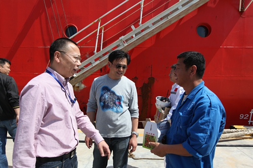 17日13:30分,隨著一聲渾厚響亮的汽笛聲,“科學”號緩緩駛入位于青島西海岸國家級新區(qū)的中國科學院海洋研究所科學考察船基地,這也是科考船專用碼頭建成以來“科學”號首次靠泊。海洋研究所所長助理李超倫,實驗室和科學考察船運管中心相關人員到碼頭迎接。