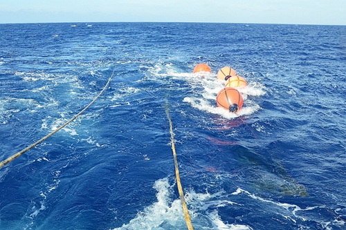 本航次歷史41天,航程8000余海里,獲取了一系列重要發(fā)現和研究進展?!翱茖W”號完成雅浦海山區(qū)32個站位的熱流測量和重力取樣,同時還成功回收6臺海底地震儀(OBS),并完成300km多道地震和7000km多波束、淺剖和重磁等數據采集。其中,此次回收的海底地震儀(OBS)于2015投放,布放時間已超過14個月,是我國首次獲得雅浦海溝區(qū)連續(xù)的天然地震數據,為該區(qū)的巖石圈結構研究提供了寶貴的第一手資料。船載設備初步分析結果顯示,該海區(qū)表層沉積物以黏土、硅藻泥、有孔蟲砂為主,索羅爾海槽南部沉積物較北部更厚,可能反映了其特殊的構造樣式。海底熱流值變化劇烈,有望揭示水熱循環(huán)在該區(qū)的活動規(guī)律。目前,科研人員正在對所獲得的數據進行深入分析,以期獲得雅浦海山區(qū)巖石圈在不同構造尺度的特征,揭示卡羅琳洋脊俯沖與雅浦海溝的相互作用及其對島弧海山發(fā)育的影響機制。