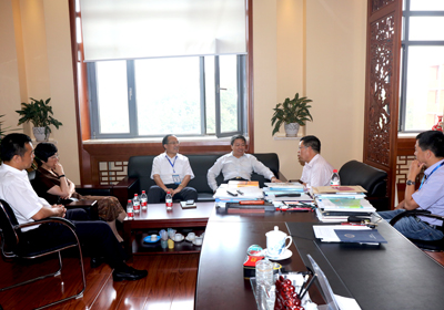尚勇(中)與李燦院士(右二)交流