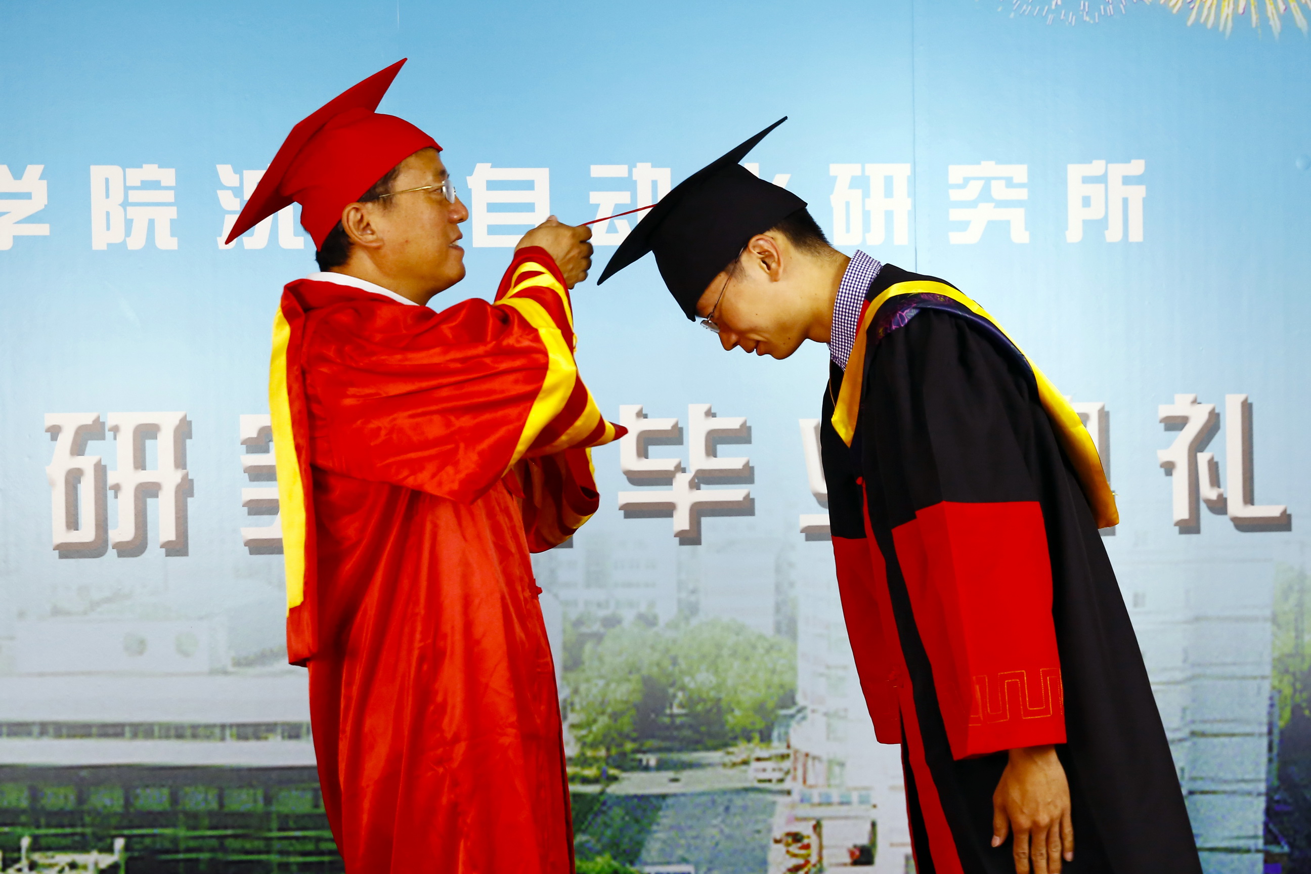 畢業(yè)典禮由周船主持。周船首先向圓滿完成學(xué)業(yè)并獲得博士、碩士學(xué)位的同學(xué)表示熱烈的祝賀,并向多年來悉心指導(dǎo)和培養(yǎng)研究生的各位導(dǎo)師、研究生教育工作者表示衷心感謝。他宣讀了沈陽自動(dòng)化所學(xué)位委員會(huì)關(guān)于冬季授予15名畢業(yè)生學(xué)位和夏季擬授予58名畢業(yè)生學(xué)位的決定。在激動(dòng)人心的樂曲聲中,桑子剛為每一位畢業(yè)生撥正學(xué)位帽上的流蘇,頒發(fā)畢業(yè)證書,發(fā)放畢業(yè)生紀(jì)念品畢業(yè)戒指,并一一合影留念。