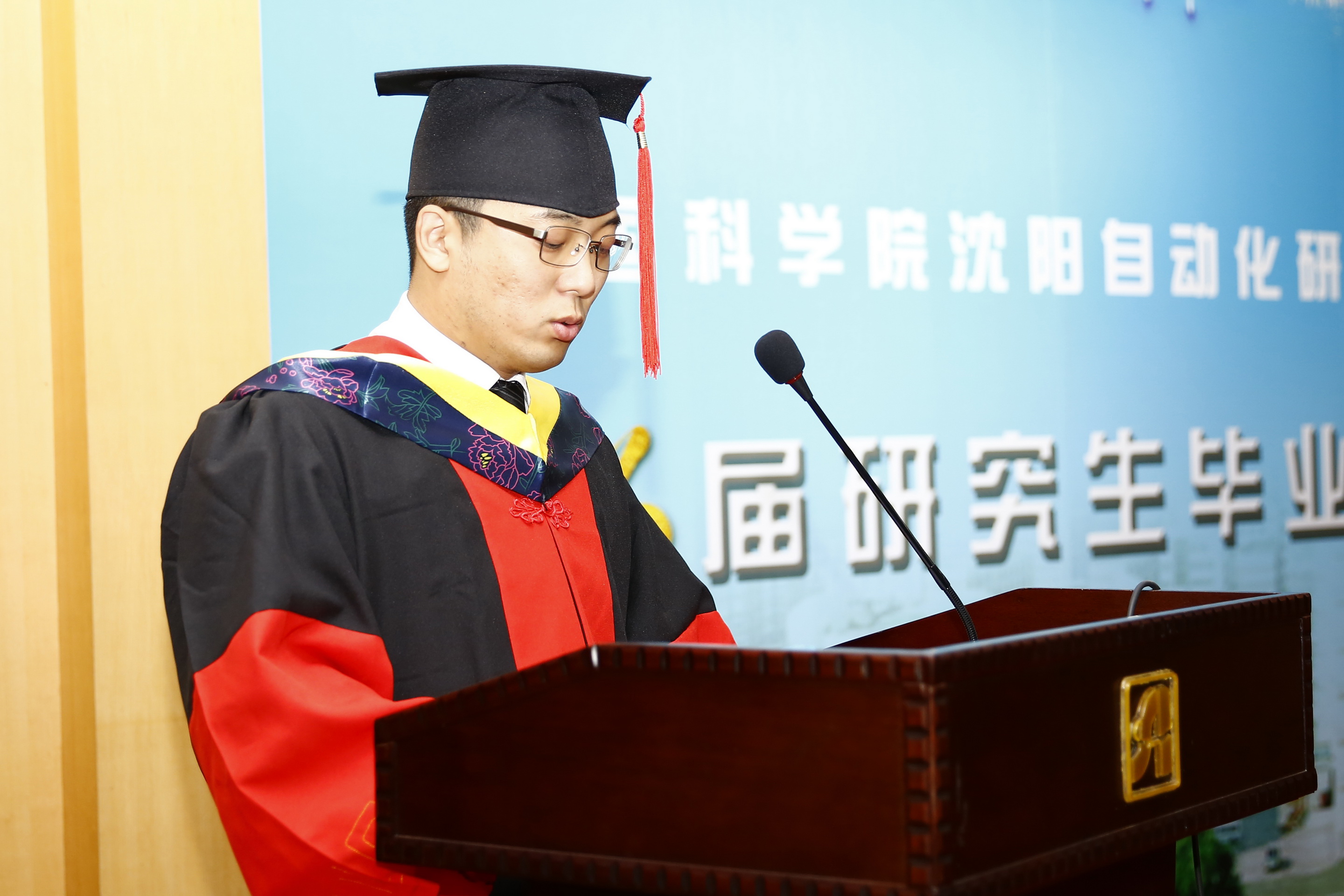 隨后,模式識(shí)別與智能系統(tǒng)專業(yè)2011級(jí)博士研究生宋國立代表畢業(yè)生發(fā)言。他回顧了在沈陽自動(dòng)化所學(xué)習(xí)生活的點(diǎn)點(diǎn)滴滴,由衷的感謝每一位導(dǎo)師對(duì)自己的悉心培養(yǎng)和呵護(hù),并真誠祝愿沈陽自動(dòng)化所事業(yè)蓬勃發(fā)展。朱楓研究員作為導(dǎo)師代表發(fā)言,他希望同學(xué)們能夠保持平常心,在逆境中,堅(jiān)強(qiáng)樂觀,永不言棄!在順境中,謙虛謹(jǐn)慎、戒驕戒躁。他表示,老師們始終會(huì)默默關(guān)注著同學(xué)們,支持著同學(xué)們。
