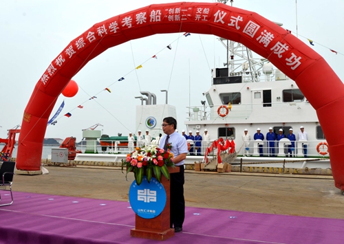 同日,由中科院煙臺海岸帶所主持建造的500噸級綜合科學(xué)考察船“創(chuàng)新一”正式交付。