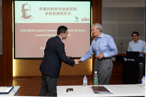 來(lái)訪期間,Horia Metiu教授為金屬所科研人員和研究生作了題目為“Alkane activation by modified oxide catalysts”的李薰獎(jiǎng)報(bào)告。報(bào)告前,張健副所長(zhǎng)代表金屬所為Horia Metiu教授頒發(fā)了李薰講座獎(jiǎng)獎(jiǎng)牌。頒獎(jiǎng)儀式和報(bào)告由蘇黨生研究員主持。Horia Metiu教授在報(bào)告中詳細(xì)講述了低鏈烷烴在金屬氧化物催化劑上活化的催化機(jī)理,說(shuō)明了通過(guò)路易斯酸堿對(duì)理論理解雜原子在調(diào)控催化劑催化性能中的作用。報(bào)告得到了金屬所科研人員和研究生的熱情響應(yīng),聽(tīng)眾紛紛踴躍提問(wèn),就感興趣的問(wèn)題與Horia Metiu教授進(jìn)行了討論。來(lái)訪期間,Horia Metiu教授還與金屬所催化材料研究部科研人員及研究生就烷烴分子在納米碳材料催化劑上的催化轉(zhuǎn)化開(kāi)展了交流研討。