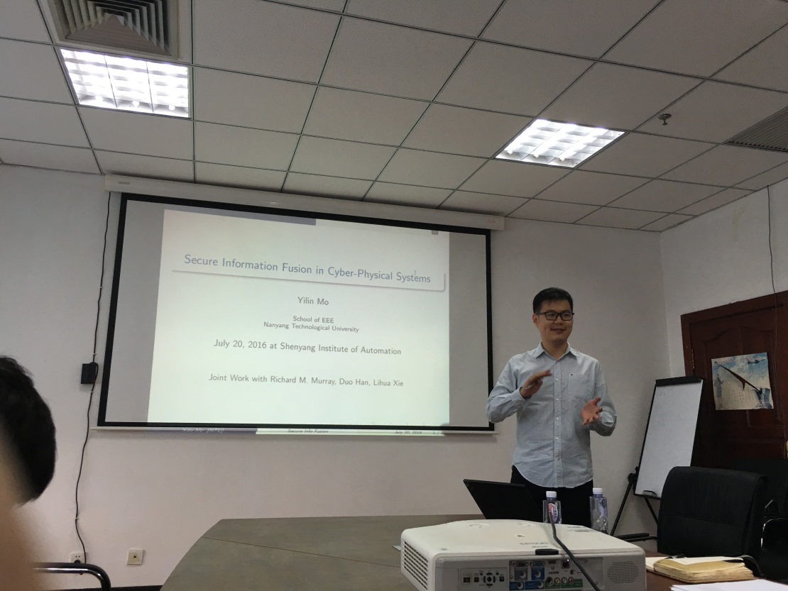 7月20日,應(yīng)中國(guó)科學(xué)院沈陽(yáng)自動(dòng)化研究所工業(yè)控制網(wǎng)絡(luò)與系統(tǒng)研究室的邀請(qǐng),新加坡南洋理工大學(xué)副教授莫一林訪問(wèn)該所,并作了題為Secure Information Fusion in Cyber-Physical Systems的學(xué)術(shù)報(bào)告。