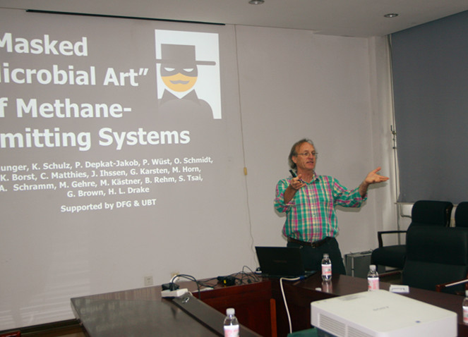 10月24日,德國拜羅伊特大學(xué)(University of Bayreuth)Harold L. Drake教授應(yīng)邀出席青島能源所主辦的“國際專家高層論壇”。Drake教授現(xiàn)任德國拜羅伊特大學(xué)環(huán)境微生物系主任,國際微生物學(xué)雜志Applied and Environmental Microbiology(AEM)主編。Drake教授是產(chǎn)乙酸微生物生理生化及生態(tài)學(xué)領(lǐng)域的國際領(lǐng)軍人物,到目前為止,已在微生物學(xué)領(lǐng)域的國際重要雜志發(fā)表論文200余篇,并編寫多本著作。他目前主要研究方向為厭氧菌生理生態(tài)、無脊椎動物微生物學(xué)、溫室氣體排放相關(guān)的環(huán)境微生物生態(tài)系統(tǒng)代謝分析。