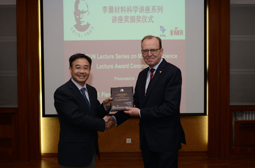 楊銳所長為Flemming Besenbacher教授頒發(fā)李薰講座獎獎牌