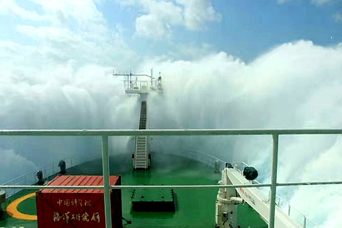 “科學(xué)”號(hào)頂著風(fēng)浪前行