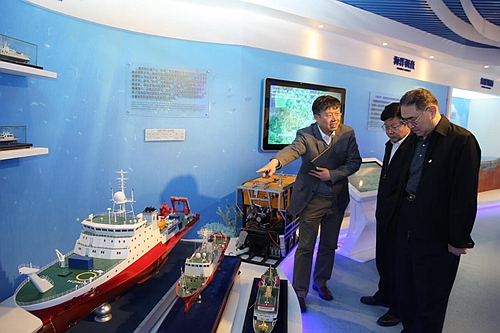 座談結(jié)束后,調(diào)研組一行現(xiàn)場考察了研究所科技成果綜合展廳、深海生物樣品庫、數(shù)據(jù)可視化系統(tǒng)等。