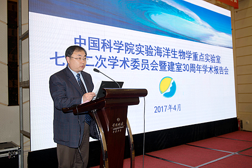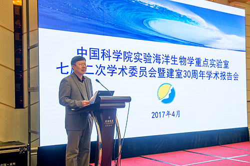 4月10日,中國科學(xué)院實驗海洋生物學(xué)重點實驗室七屆二次學(xué)術(shù)委員會暨建室30周年學(xué)術(shù)報告會在青島召開,原國家自然科學(xué)基金委副主任和原實驗室主任朱作言院士、實驗室學(xué)術(shù)委員會主任康樂院士等13位委員及顧問,中國科學(xué)院海洋研究所所長王凡、黨委書記王輝、常務(wù)副所長楊紅生、紀(jì)委書記畢偉,原實驗室主任費修綆研究員、原實驗室副主任周百成研究員和張培軍研究員,海洋所相關(guān)部門負(fù)責(zé)同志以及實驗室人員參加會議會議。學(xué)術(shù)委員會主任康樂院士和副主任桂建芳院士主持會議。