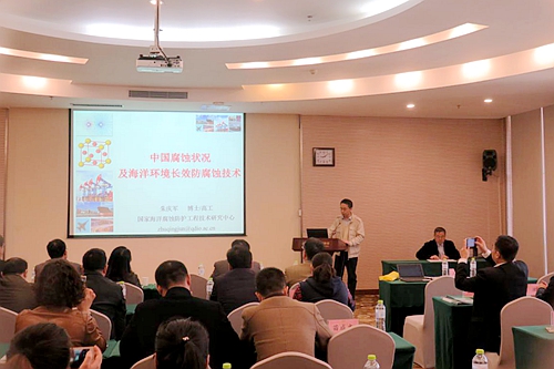 朱慶軍高級工程師首先介紹了中國工程院重大咨詢項(xiàng)目“我國腐蝕狀況及控制戰(zhàn)略研究”的項(xiàng)目背景和研究結(jié)果,以及國家海洋腐蝕防護(hù)工程技術(shù)研究中心的新技術(shù),建議將基礎(chǔ)設(shè)施及重大裝備腐蝕防護(hù)安全納入煙臺市長遠(yuǎn)規(guī)劃,提高防腐蝕意識。王建華助理研究員介紹了煙臺市腐蝕調(diào)查情況,李言濤研究員介紹了海洋腐蝕評價(jià)檢測技術(shù),兩家院士工作站也分別介紹了合作研發(fā)的防腐新材料。