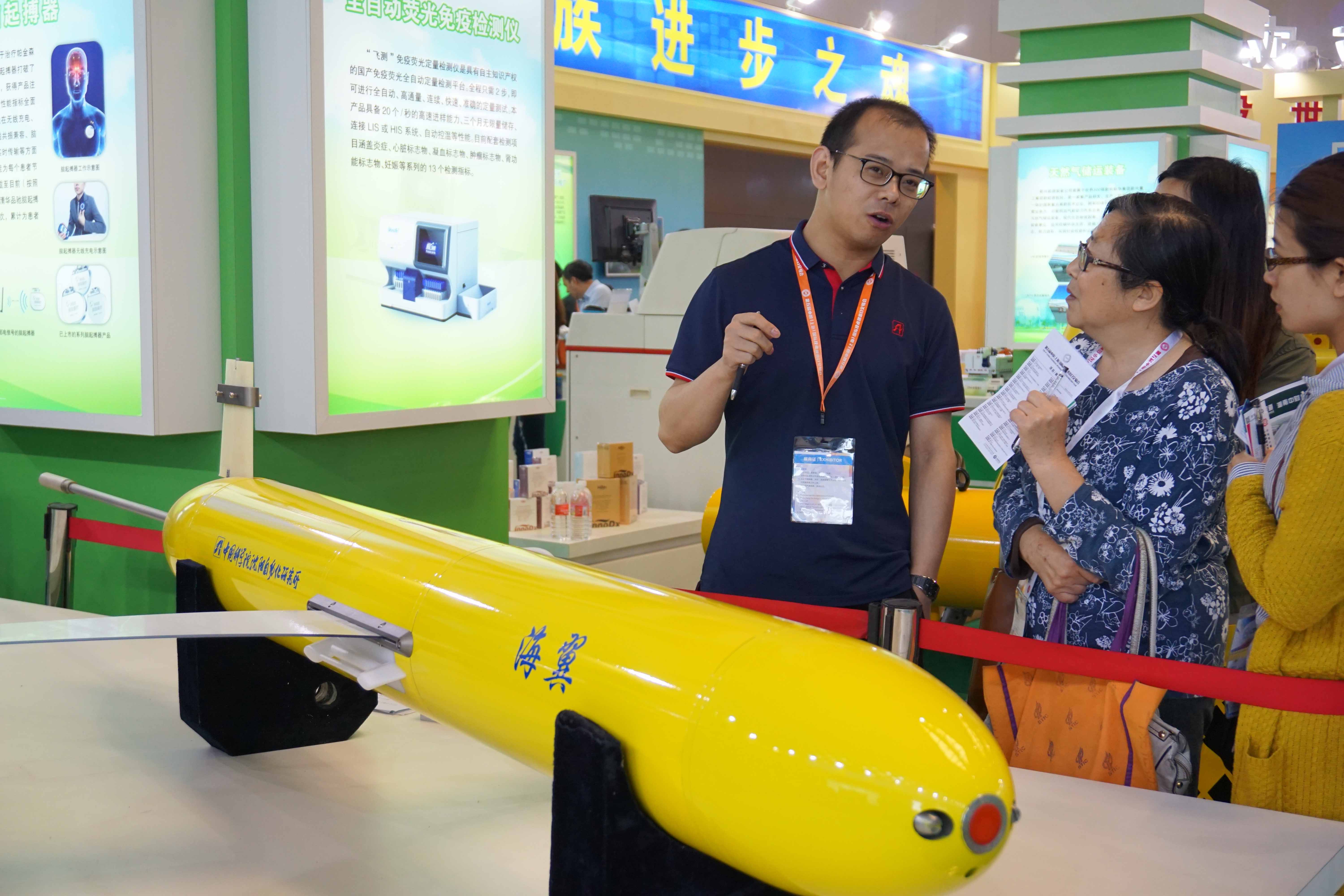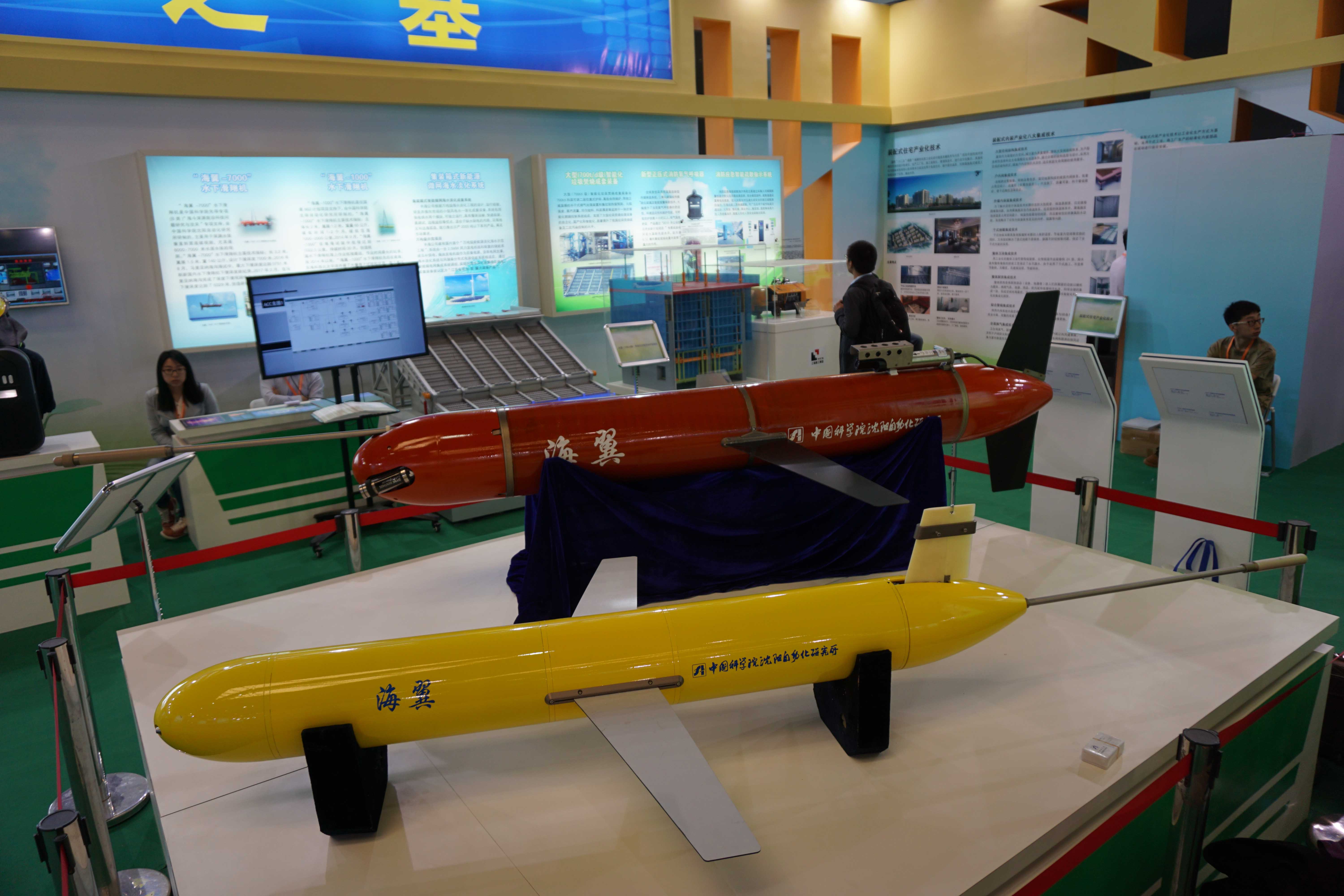 上交會(huì)上展出的“海翼”7000米級(jí)和1000米級(jí)水下滑翔機(jī)
