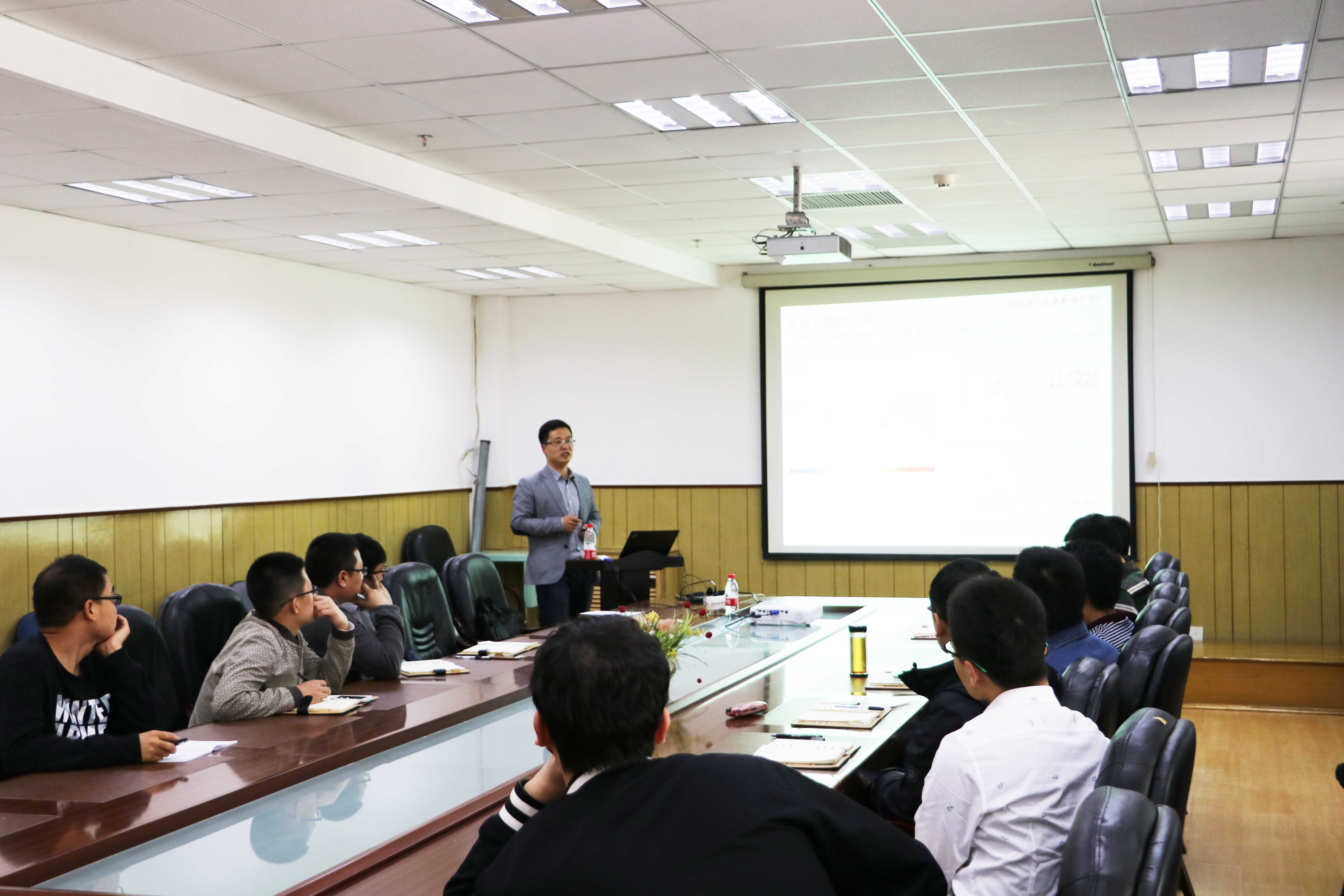 離散渦法是一種可以預(yù)測(cè)三維船舶在粘性流下自由運(yùn)動(dòng)的離散元方法。姜宜辰在報(bào)告中闡述了離散渦法的數(shù)學(xué)原理,并詳細(xì)介紹了其在船舶橫搖、船舶耐波性、主動(dòng)T型翼控制策略以及海上波浪能和風(fēng)能等領(lǐng)域的開發(fā)與應(yīng)用。報(bào)告得到與會(huì)科研人員、研究生的積極響應(yīng)和熱烈討論,對(duì)于后續(xù)開展學(xué)術(shù)交叉創(chuàng)新具有推動(dòng)作用。