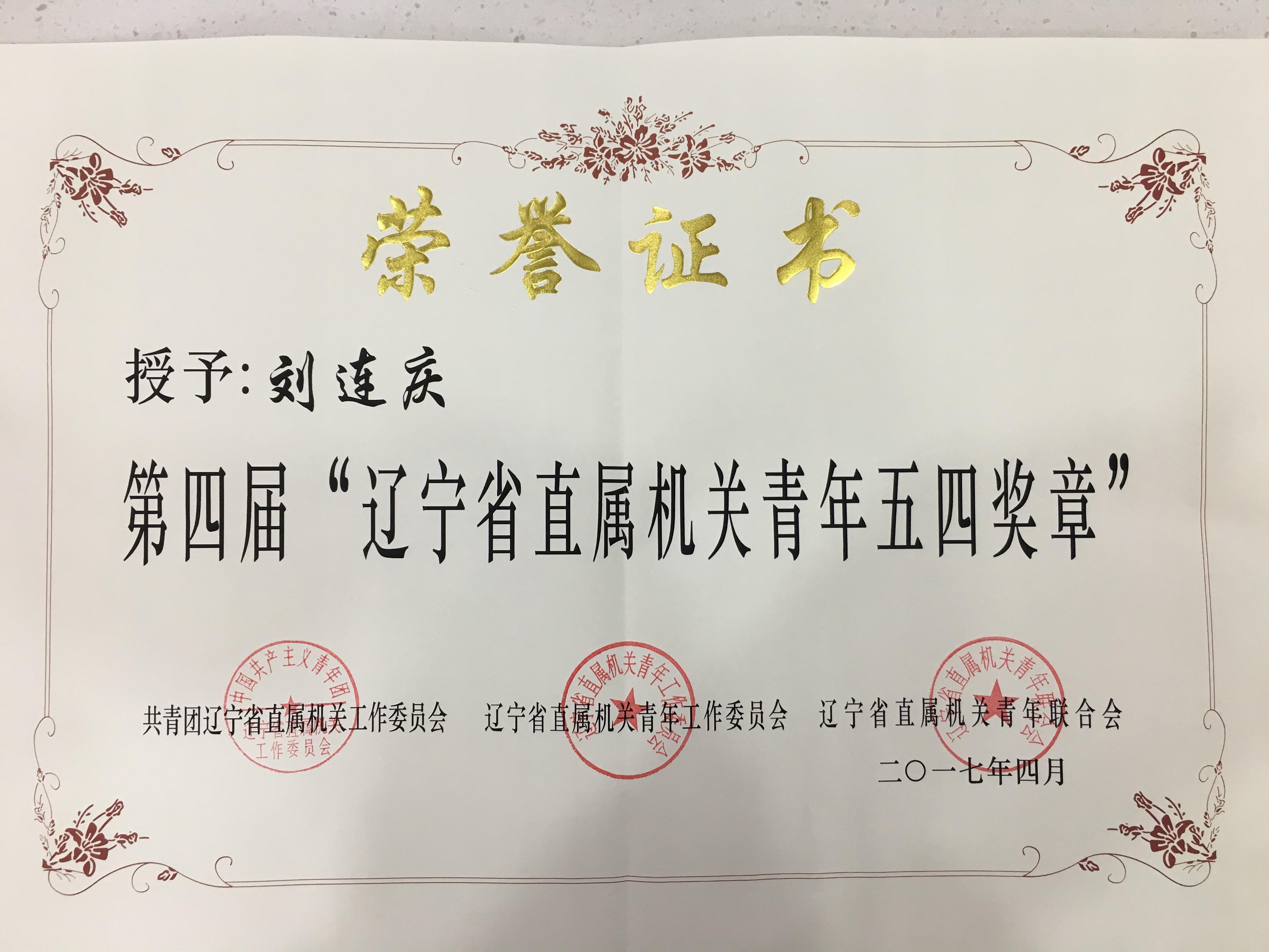 劉連慶獲評(píng)遼寧省直機(jī)關(guān)青年五四獎(jiǎng)?wù)?/p>