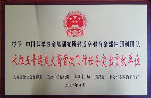 金屬所輕質(zhì)高強合金部件研制團隊獲“長征五號運載火箭首次飛行任務(wù)突出貢獻單位”榮譽稱號,為科學(xué)院唯一獲此榮譽單位。參加長征五號運載火箭研制任務(wù)的輕質(zhì)高強合金部件研制團隊包括:楊銳、徐磊研究員的“Ti-5Al-2.5Sn ELI粉末冶金氫泵葉輪”項目組,陳榮石、韓恩厚研究員的“高強鎂合金慣組支架”項目組,戎利建研究員、王本賢副研究員的“GH4169大口徑薄壁管材、鍛件”項目組。