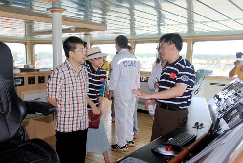 中國駐密克羅尼西亞大使李杰攜夫人及大使館工作人員、援外工作人員代表等到“科學”號進行了參觀。中科院海洋所船舶中心主任李雷溪、工程技術部主任刁新源、船長陳修峰及全體船隊員接待了李杰大使一行。
