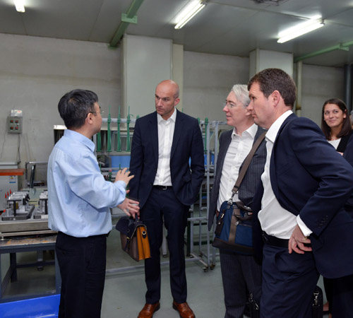圖1 楊銳(左一)向Mike Mosley(左二),Patrick Horgan(左三)和David Ayton(左四)介紹關(guān)鍵工藝