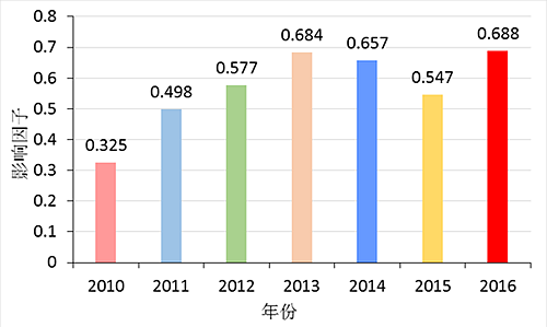 通過(guò)以上舉措,近年來(lái)CJOL期刊各項(xiàng)指標(biāo)穩(wěn)步提升。每年收稿約400篇,國(guó)際投稿約占20%(稿源來(lái)自20余個(gè)國(guó)家,包括一些發(fā)達(dá)國(guó)家的作者);期刊總體質(zhì)量和各項(xiàng)指標(biāo)穩(wěn)步提升,影響因子總體增加;在中國(guó)科學(xué)院科學(xué)出版基金的期刊排行榜上名次顯著提升,連續(xù)三年獲得中國(guó)科學(xué)院出版基金二等獎(jiǎng);2012-2016年連續(xù)被評(píng)為“中國(guó)最具國(guó)際影響力學(xué)術(shù)期刊”,2014年、2016年先后兩次獲得中國(guó)科協(xié)“中國(guó)科技期刊國(guó)際影響力提升計(jì)劃”項(xiàng)目支持,累計(jì)支持經(jīng)費(fèi)225萬(wàn)元。