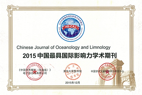 6月14日,Web of Science發(fā)布了最新SCI期刊影響因子,由中國(guó)海洋湖沼學(xué)會(huì)主辦、中國(guó)科學(xué)院海洋研究所承辦的期刊《中國(guó)海洋湖沼學(xué)報(bào)》(英文版)(Chinese Journal of Oceanology and Limnology, CJOL)最新影響因子為0.688,創(chuàng)歷史新高,較2015年影響因子(0.547)增長(zhǎng)25.77%,總被引頻次為1227次,5年平均影響因子為0.819。