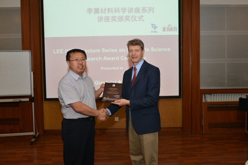 張哲峰副所長為Gianluigi A. Botton教授頒發(fā)李薰研究獎獎牌