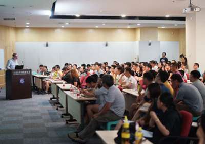 首先,Raymond以“Opening”“Challenge”“Action”“Resolution”,即OCAR四大科技論文前言寫作邏輯方式,為同學(xué)們講解了科學(xué)論文寫作技巧;隨后,Annmarie以詼諧幽默的語(yǔ)言為同學(xué)們講授了垃圾科技論文存在的原因以及如何辨別垃圾科技論文等;最后,Philip為同學(xué)們?cè)敿?xì)介紹了雅思聽(tīng)、說(shuō)、讀、寫的技巧,并強(qiáng)調(diào)英語(yǔ)口語(yǔ)的三大注意點(diǎn):簡(jiǎn)單介紹,長(zhǎng)對(duì)話,自由對(duì)話。他告訴同學(xué)們英語(yǔ)口語(yǔ)應(yīng)自信的去表達(dá)出去,以及“But don’t pretend to be smart”。
